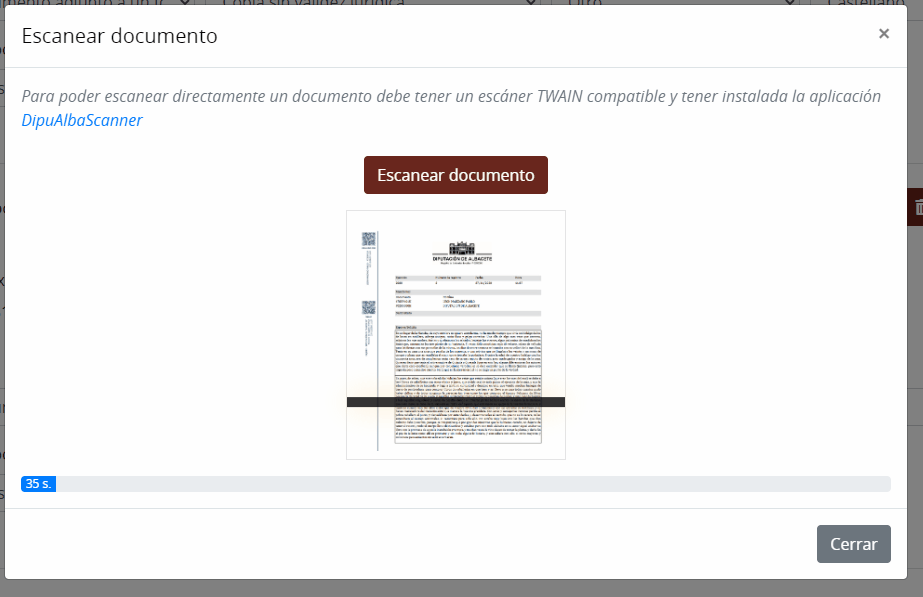 Se aumenta el tiempo de espera para escanear un documento a 15 minutos. También se añade un indicador del tiempo restante para poder escanear el documento.